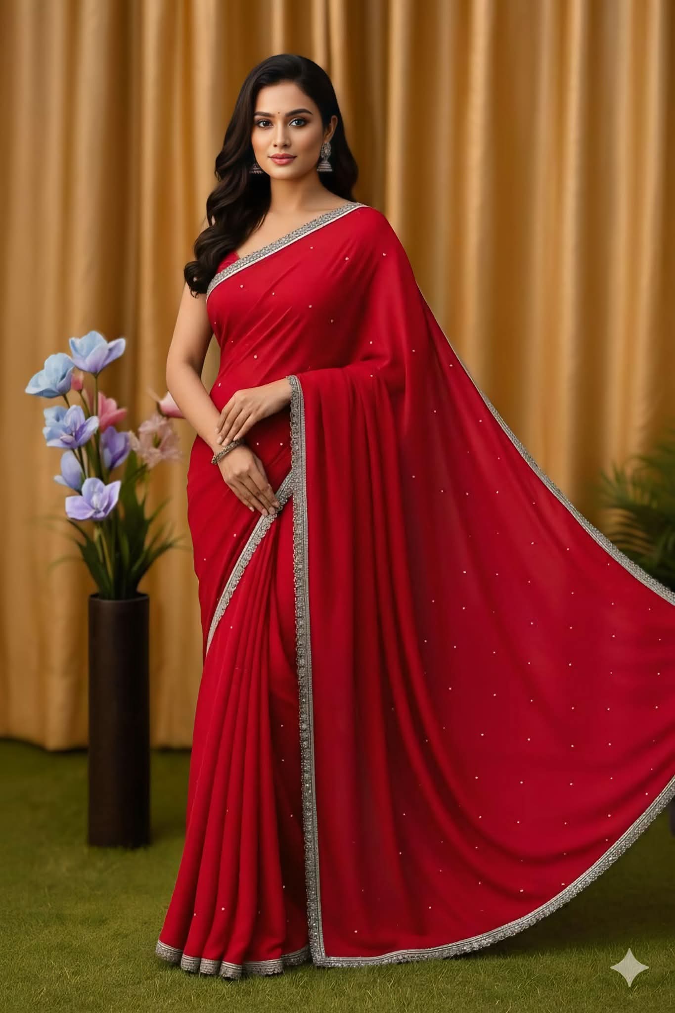 নিখুঁত কারুকাজে তৈরি এই সফট জর্জেট শাড়িটি আপনাকে করে তুলবে আরও আকর্ষণীয় ও স্টাইলিশ। শাড়ির চারপাশে মনোমুগ্ধকর লেইসের কাজ এবং হালকা স্টোন ওয়ার্ক এটিকে দিয়েছে অনন্য সৌন্দর্য। হালকা ও আরামদায়ক হওয়ায় এটি সহজে পরিধানযোগ্য এবং দীর্ঘসময় আরামদায়ক থাকে। এর সাথে রয়েছে ম্যাচিং ব্লাউজ পিস, যা আপনার সাজকে করবে সম্পূর্ণ।